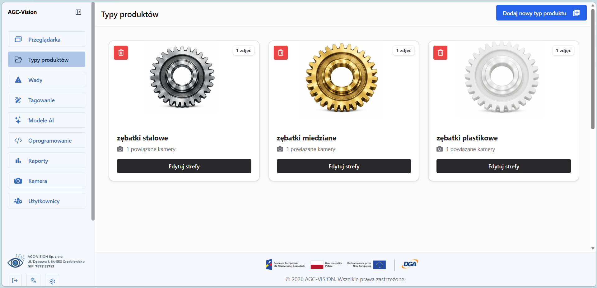 Możliwość dodania nowego typu produktu, który ma zostać poddany ocenie lub zmienienia parametrów istniejących.