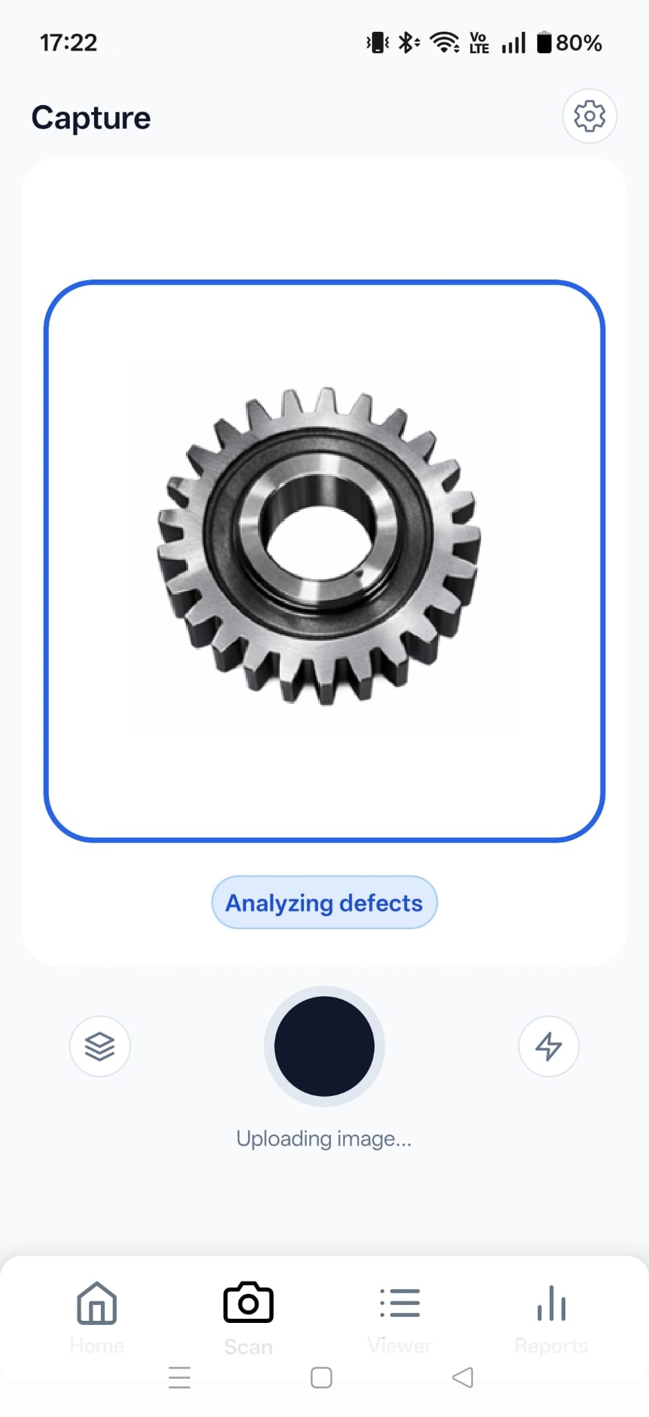 Wykonywanie zdjęć bezpośrednio z aplikacji oraz natychmiastowa analiza obrazu przez sieć neuronową. Użytkownik od razu otrzymuje ocenę OK/NOK oraz podgląd wykrytych defektów, co pozwala szybko zweryfikować jakość elementu